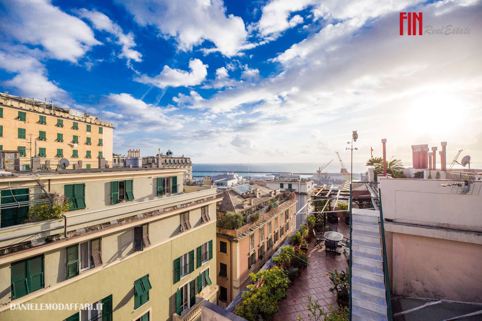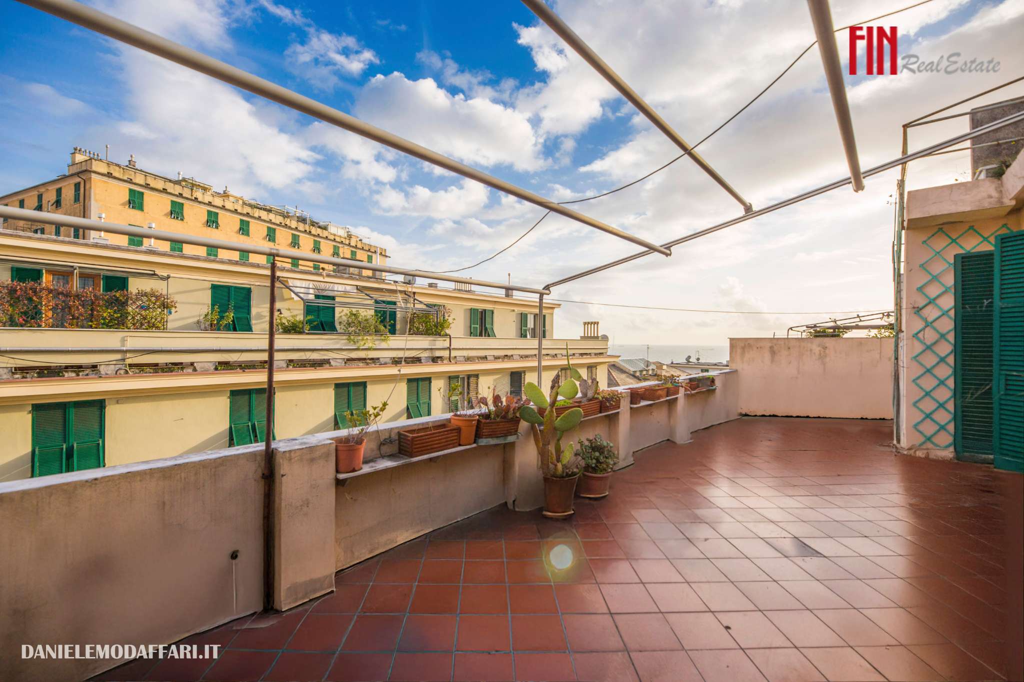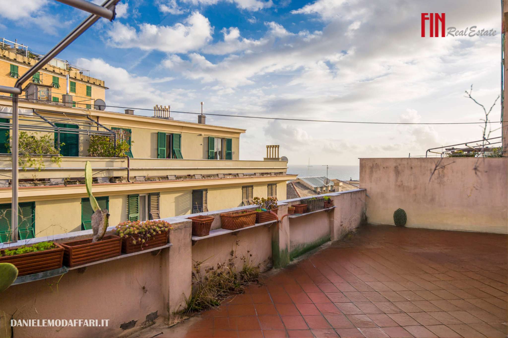 CARIGNANO – ATTICO BILIVELLO CON TERRAZZO VISTA MARE Nella centralissima Via Rivoli, in uno dei quartieri più eleganti di Genova, proponiamo attico bilivello di 165 mq da personalizzare con spettacolare terrazzo al piano di 70 mq vista mare. L’immobile è composto al piano inferiore da ingresso, 4 camere, bagno, lavanderia, 2 ripostigli; salendo la scala interna, al secondo piano, troviamo soggiorno con cucina, 1 camera, 1 bagno, meraviglioso terrazzo panoramico con vista mare, ideale per vivere l’esterno in totale privacy. Completa la proprietà una ampia cantina. Richiesta € 490.000 Fin Real Estate 0103046951 – 3405856138