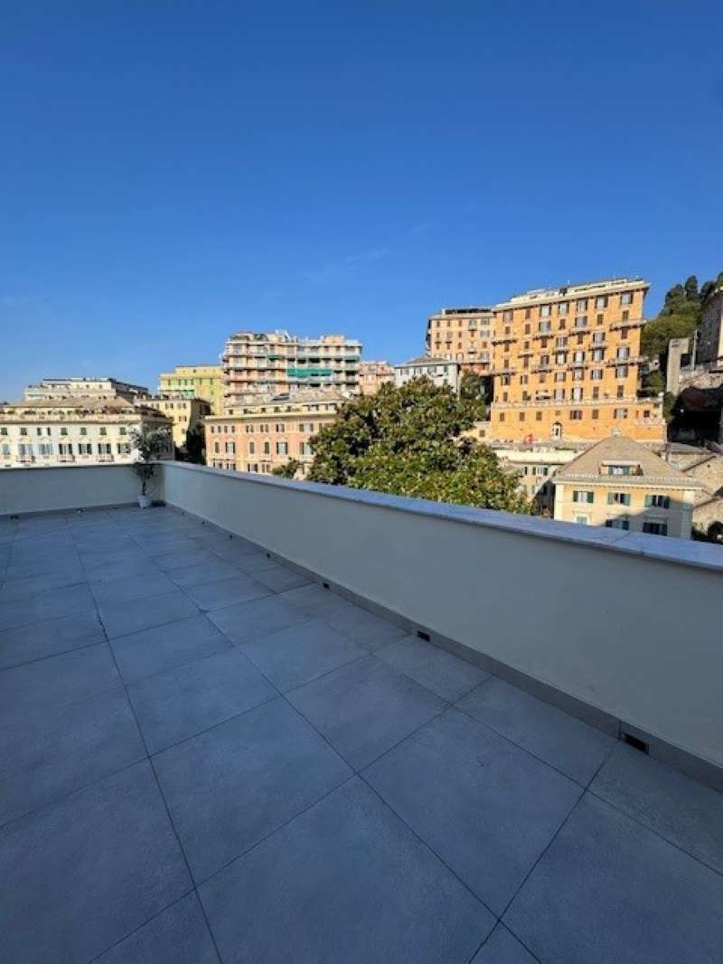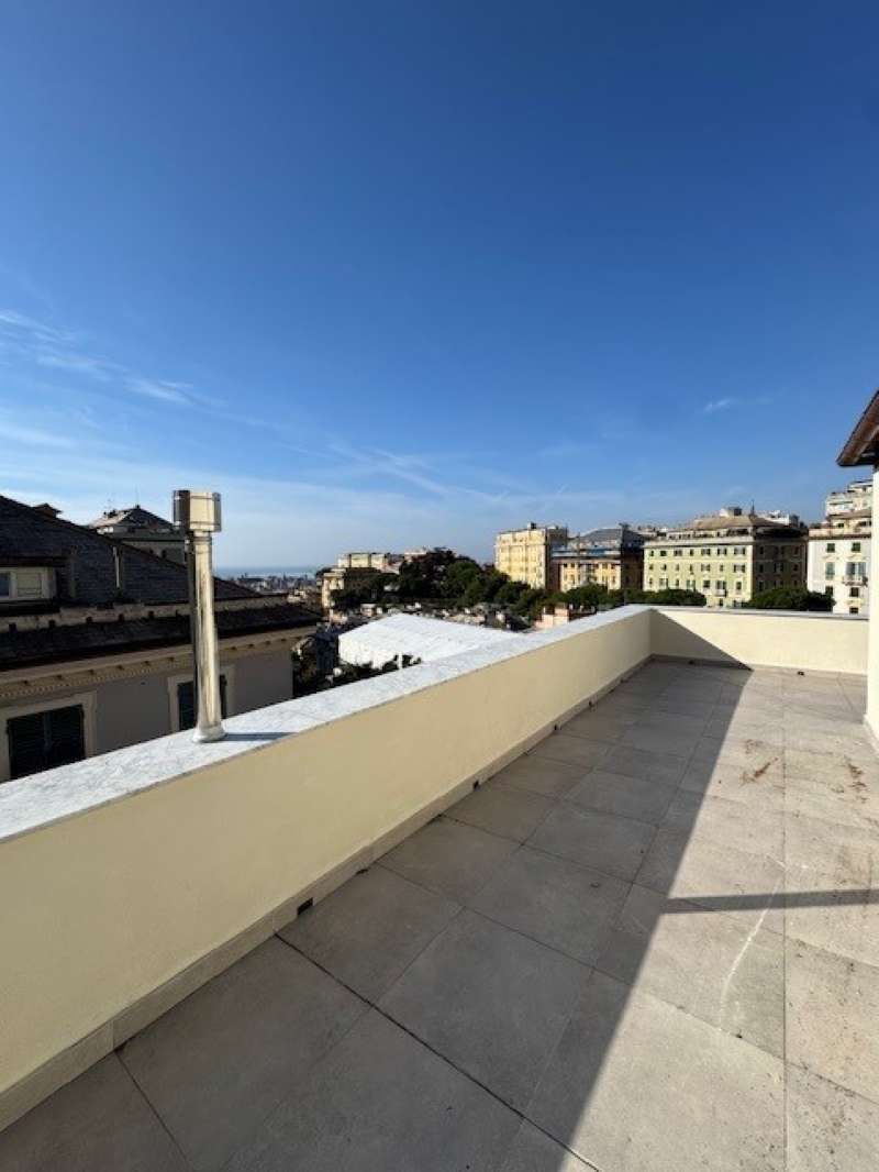 CASTELLETTO ATTICO Corso Paganini in prestigiosa palazzina, spettacolare mq 125 da personalizzare, composto da ingresso, ampio salone, tre camere, cucina, due servizi, terrazza al piano mq 100, incantevole vista mare/città, cantina, opportunità unica, € 545.000 Per informazioni Fin Real Estate Via Galata 56r Tel. 0103022311