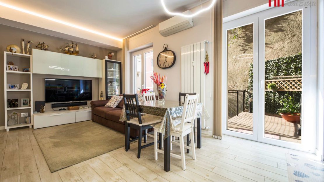 Ottima esposizione a Sud Ovest , terrazza al piano pensile con scorcio mare. Immobile di recentissima ristrutturazione , impianti certificati, pavimenti effetto parquet, infissi taglio termico triplo vetro, climatizzazione, allarme , tapparelle motorizzate. Full optional. Possibilità arredo su misura, posti auto condominiali. Richiesta Euro 227.000 Fin Real Estate Via Sarfatti 4r. 0103046951 3937015233